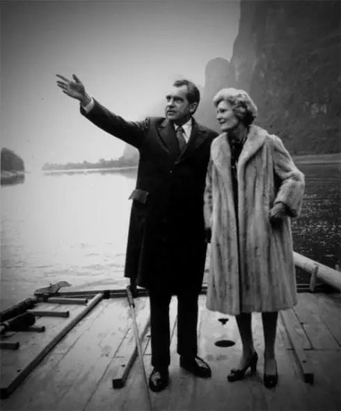 1976年2月,美國總統尼克松夫婦在桂林陽朔游覽(月亮山留念)
