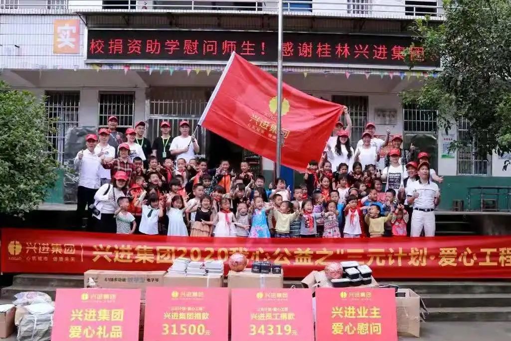 自2012年起,興進集團連續9年堅持參與桂林關心下一代工作委員會發起的"三元午餐·愛心工程"活動,為全州縣東山鄉白嶺小學捐款捐物,建立樂讀書屋,且每年六一兒童節都會組織黨員干部與員工前往關懷慰問。